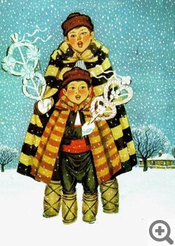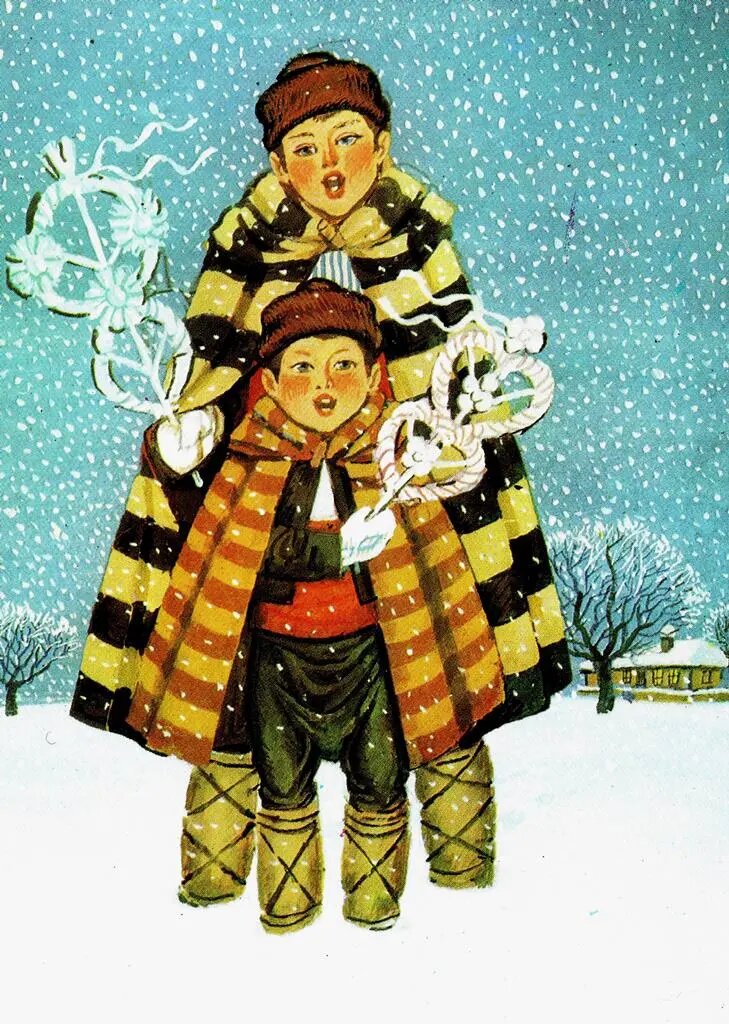 На открытках мы видим, как дети разных стран колядуют на Рождество. Немного по-разному – в соответствии со своими национальными традициями.